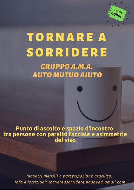 A Padova è attivo dal 2020 il gruppo di Auto Mutuo Aiuto (A.M.A.) “Tornare a sorridere”, un punto di ascolto e uno spazio d’incontro tra persone con paralisi facciale e asimmetrie del viso.